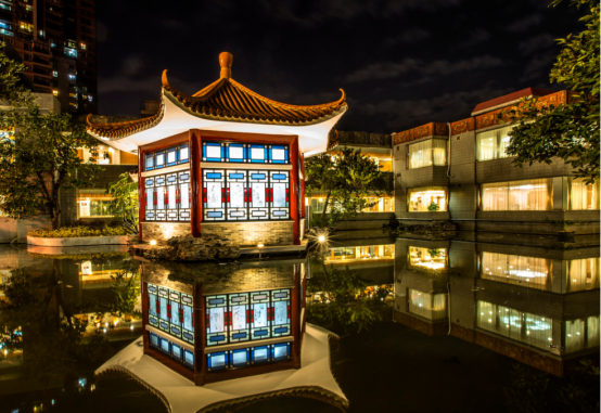 2021年,夜色中的番禺宾馆,犹如夜空中一颗璀璨的明珠。她将继续秉承国企担当,为建设更加富裕和谐的番禺作出应有的贡献,续写新时代的华章。