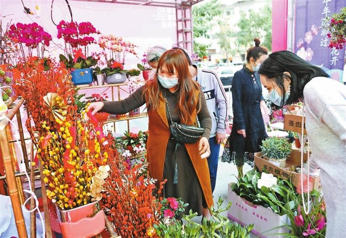 春节的脚步近了,逛花街,摆年花,成为市民的期待。2月4日,全市74个街道近3200个迎春花购花档正式面向市民开售。记者走访多个花市点看到,花市开到家门口,摊档花卉品种丰富多样,市民就近就能逛花街、买年货,有的还能看花景,各有特色。同时,购花点设置了体温监测设备,提醒市民戴好口罩做好疫情防控。