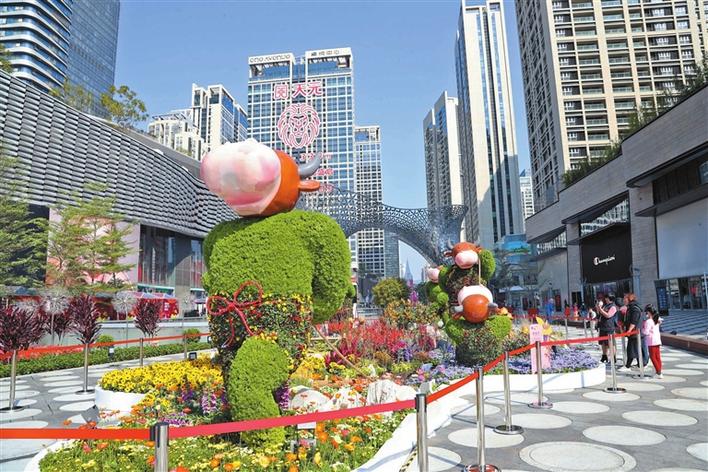 卓悦中心街道购花点“开拓牛”花景。
