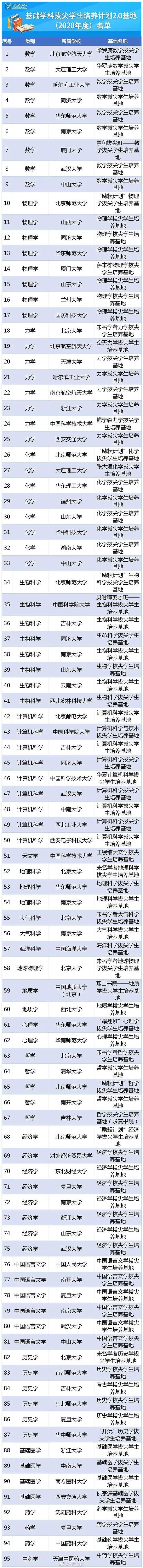 教育部5日公布基础学科拔尖学生培养计划2.0基地(2020年度)名单,包括北京大学未名学者力学拔尖学生培养基地,清华大学哲学拔尖学生培养基地,复旦大学经济学拔尖学生培养基地,中国人民大学中国语言文学拔尖学生培养基地等。名单如下,有你心仪的学校吗?