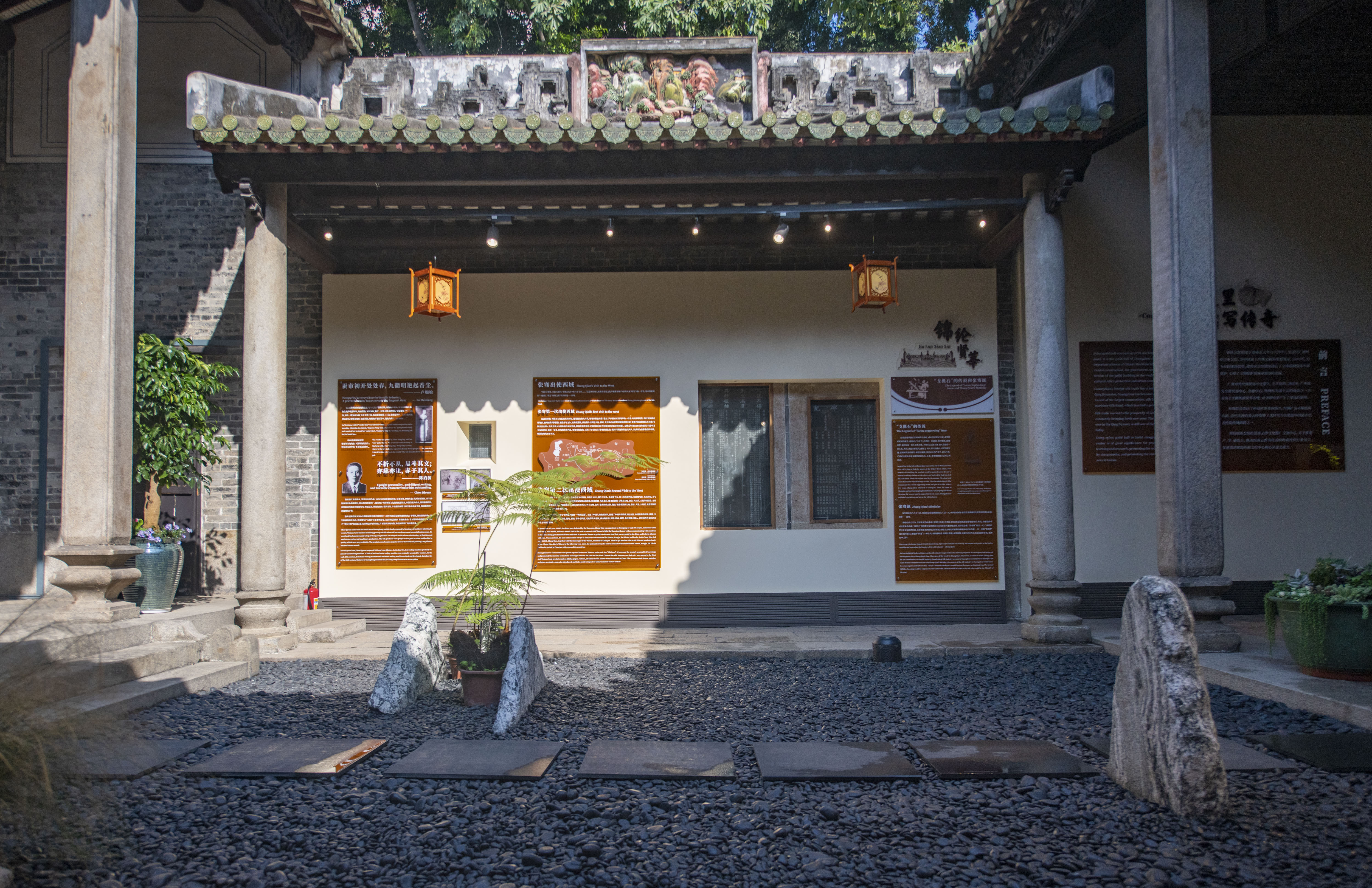华南农业大学艺术学院老师徐先鸿是锦纶会馆活化项目的生活与景观活化设计师。他告诉记者,进场后他们把半年的时间花在建筑的养护上,然后再进行修复以及景观和生活方式的营造。在此过程中,他们清理出所有与建筑本身无关的电线、钉子,对木料进行了包浆保养。“我们自建了支架走线并专门定制了展陈柜,用来铺陈电线。贴墙打造了展示墙面,用来布置展览空间。保证不在原有墙面和石碑上钉一颗钉子,保证展示空间剥离原有建筑空间时,不伤害建筑本身。”徐先鸿说。