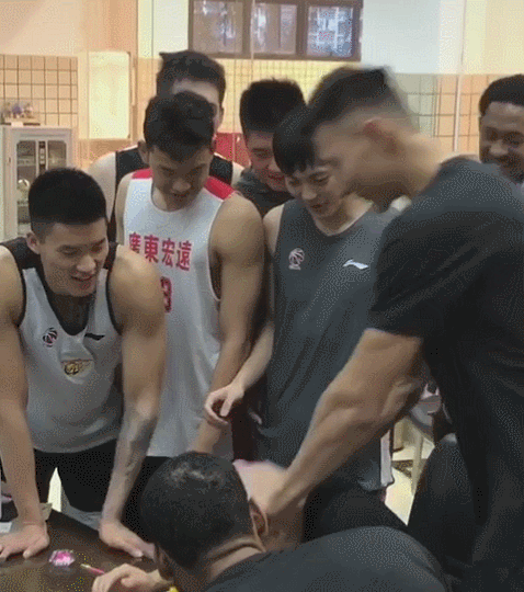 毕竟,去年赵睿过生日的时候,当时的场面就比较残暴了。让我们注意9号小将易建联的热身动作!