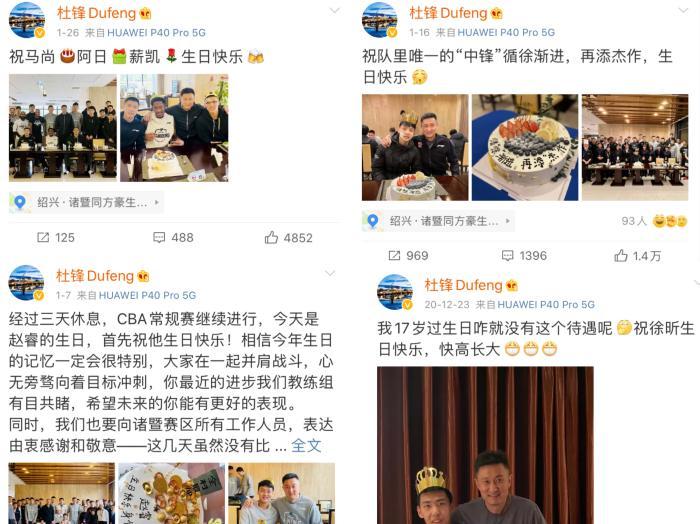 插播一个彩蛋,冠军教练杜锋已经变身生日博主,几乎每条微博都在祝贺队员生日……