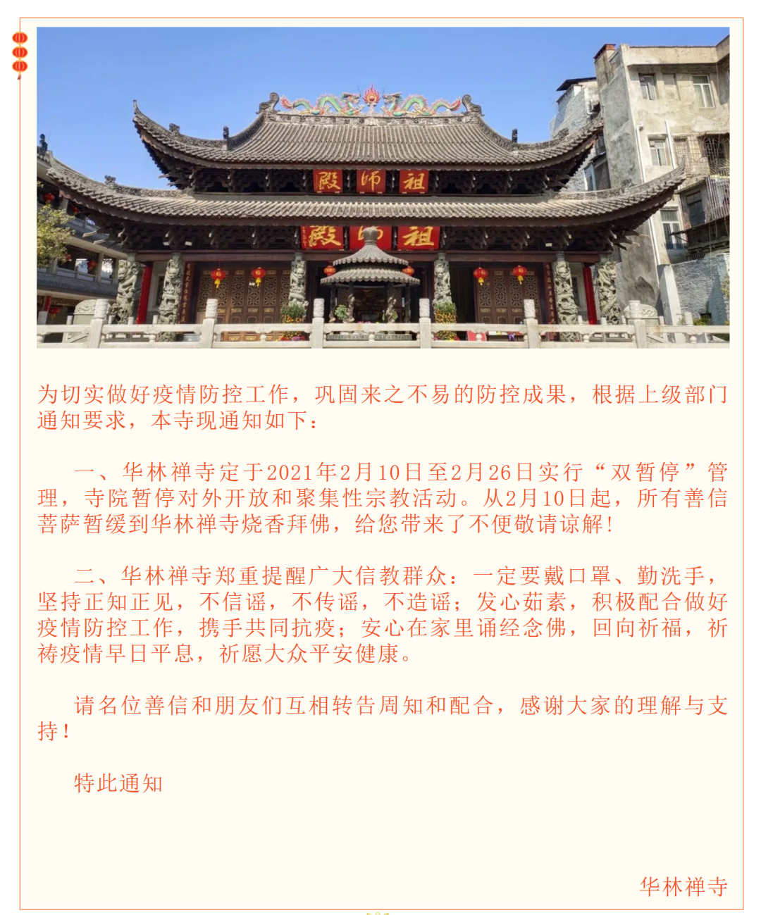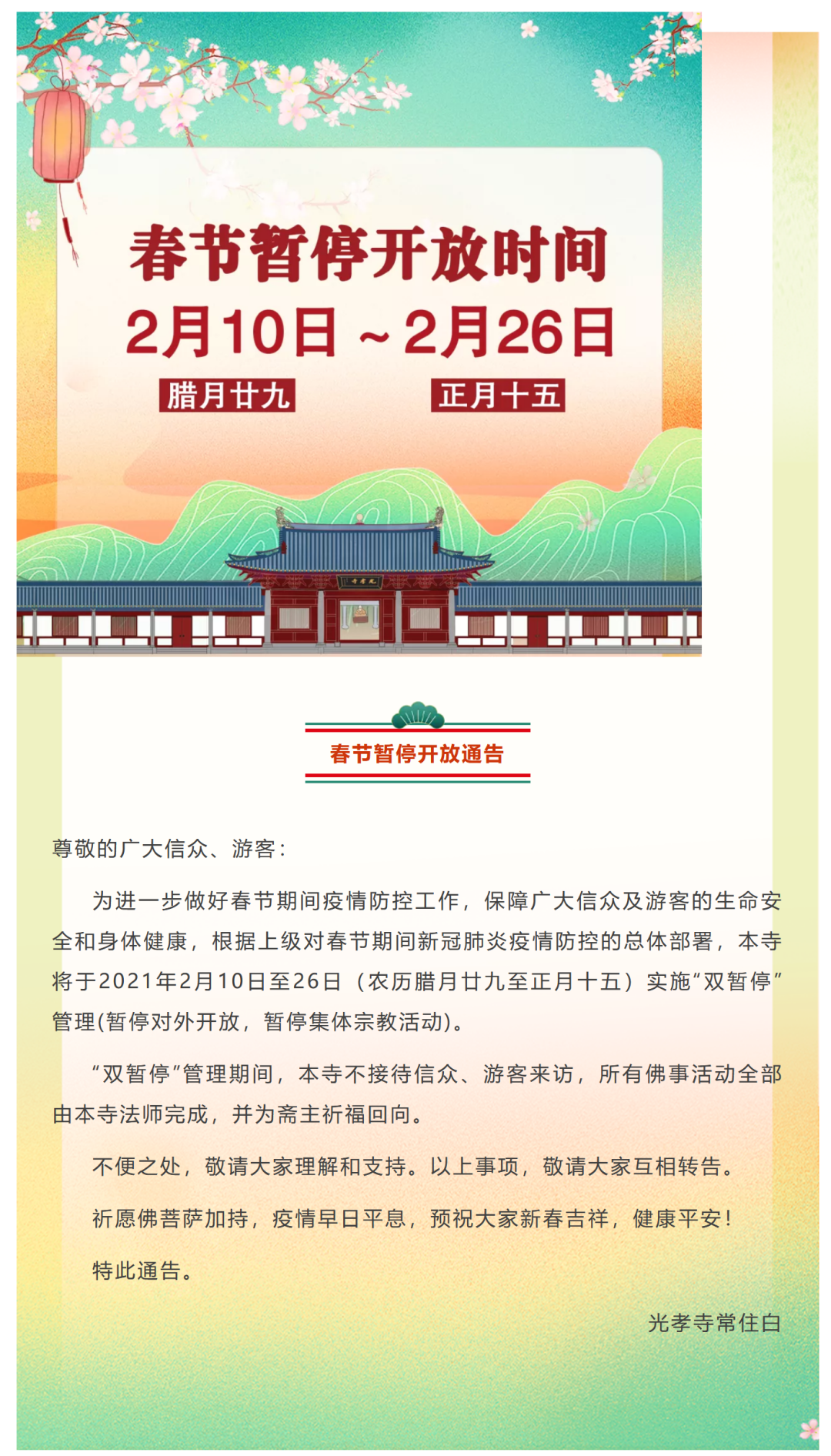光孝寺、华林寺也于2月5日发布了春节暂停开放通告↓↓