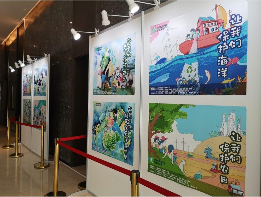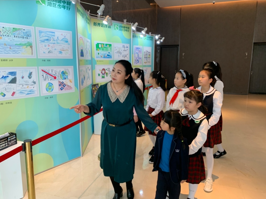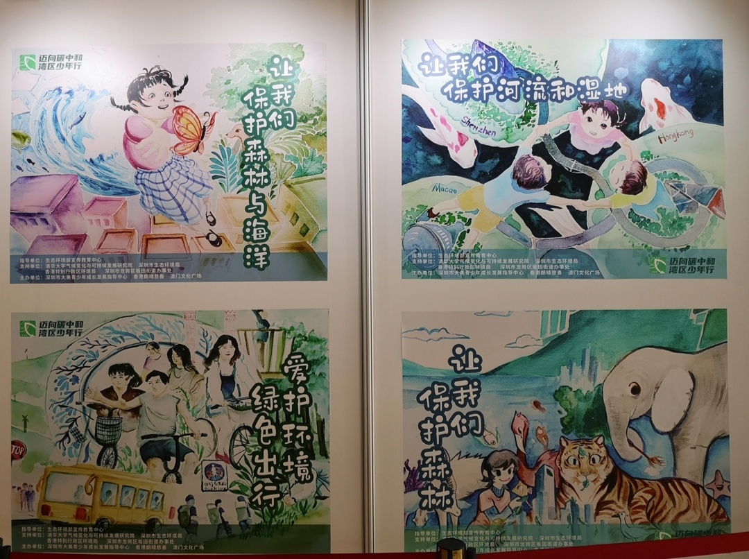 当天的深圳会场还以“云直播”看展的方式,带领青少年学习有关“中国碳达峰与碳中和”有关重要信息、讲述绿色低碳环保传承人故事,展现他们尊重自然、保护环境、贡献社会、推动环保事业发展奋斗的足迹。同时,还展出了“变废为宝”澳门青少年手工作品展、“绿色生活”香港青少年绘画作品展、“七彩鹏城”深圳青少年绘画作品展等,三地青少年发挥奇思妙想,大胆创意,用他们自己的作品,表达他们绿色低碳生活的理解和畅想,以青少年的视角看现在和未来。