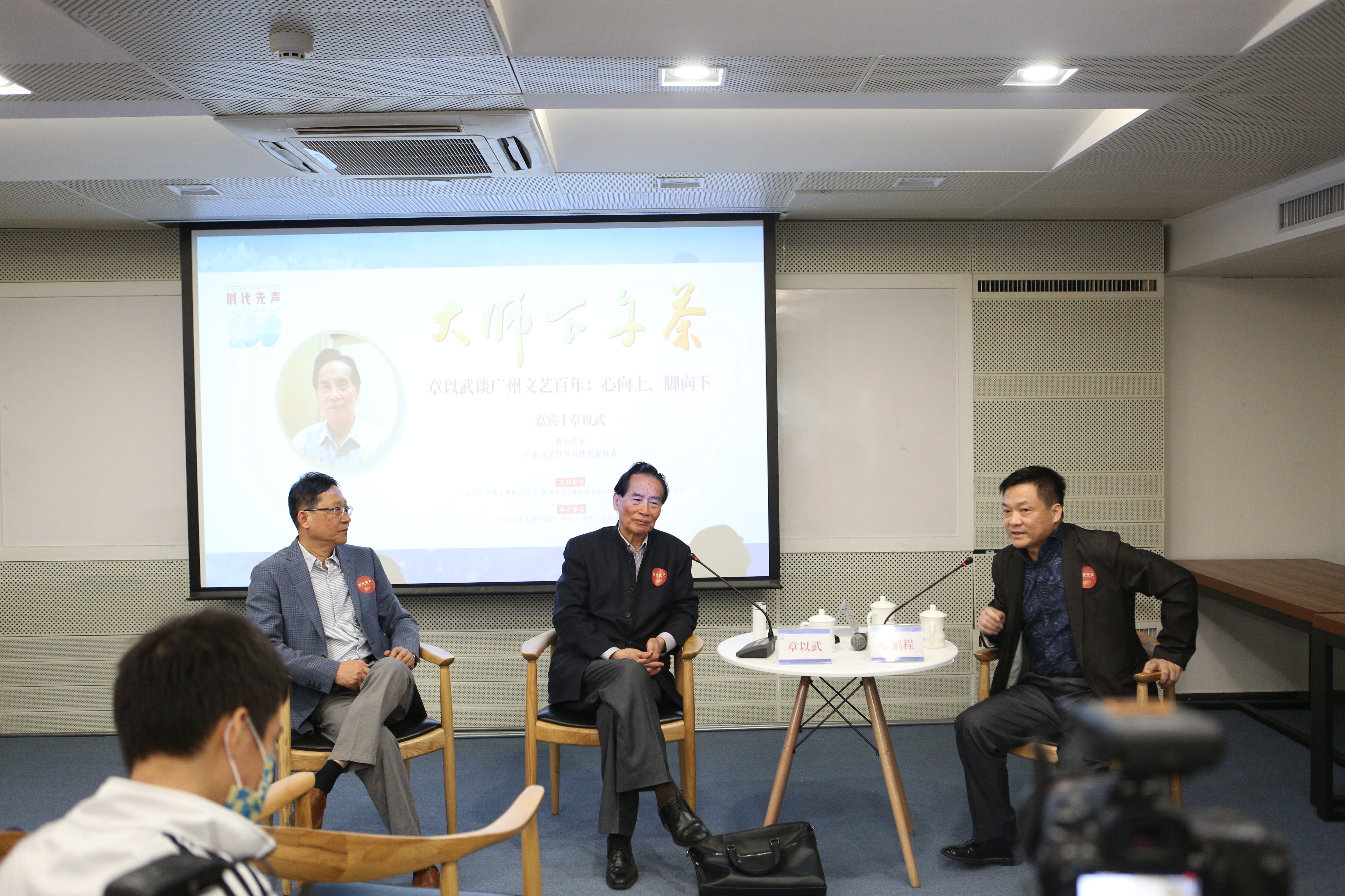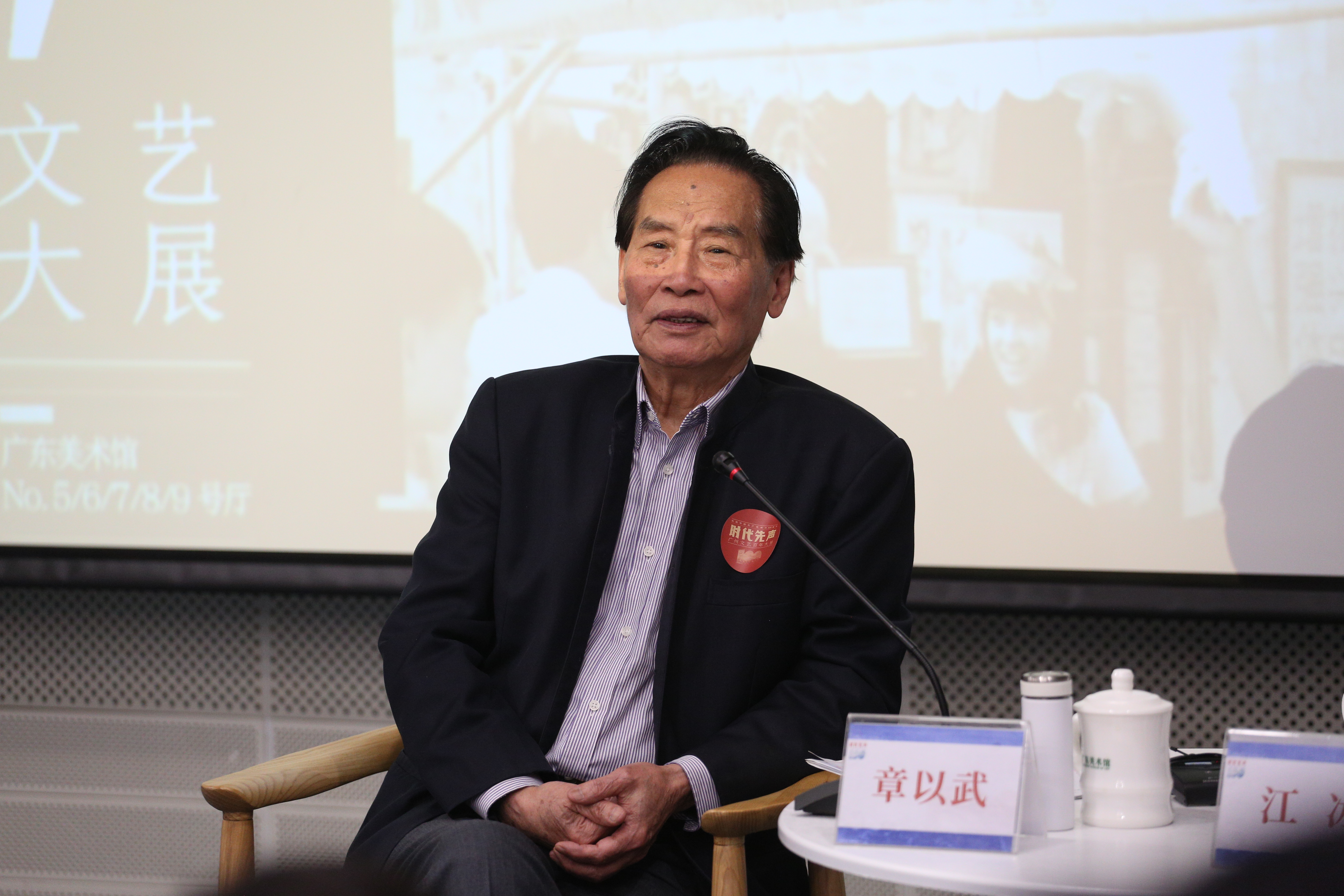 2月6日下午,著名作家、广东文艺终身成就奖获得者章以武来到大展现场广东美术馆,做客广州文艺市民空间“大师下午茶”活动。广州文艺百年大展的策划者和组织者、广州市文联主席李鹏程与广州岭南文化研究会会长、文艺评论家江冰分别作为特邀嘉宾和主持嘉宾,同章以武就百年来广州文学的发展历程进行了精彩对话。