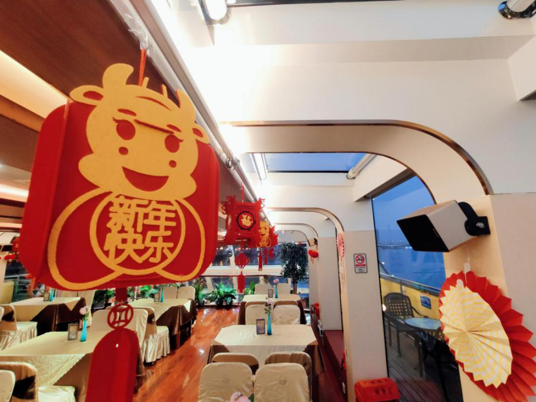 今年春节,受新冠肺炎疫情影响,全国多地倡议“就地过年”。留在广州如何度过一个别样的春节?珠水夜韵不可或缺,珠江夜游的同时在船舶上吃团圆饭又是什么滋味?记者了解到,这个春节,不仅有水上年夜饭,还有牛年主题航班可以亲子同乐;“听见花开”主题航班实行“随上随下”、“多点停靠”的运行方式,实现水陆联游,让市民玩转广州;还可以乘坐加菲猫主题船一边喝下午茶一边观赏一江两岸的迤逦风光……如果问过年留穗玩什么?广州公交集团客轮有限公司在抓好疫情防控、强化安全检查的同时,为留穗过年的市民、游客提供多种春节珠江游活动进行选择。