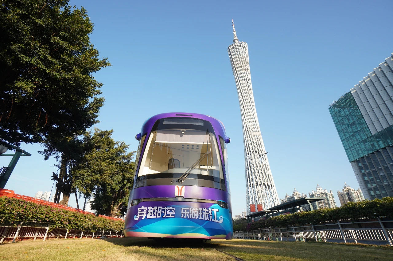 当珠江游遇上广州陆上最美7.7公里——首列“穿越时空乐游珠江”主题有轨列车上线。主题列车以珠江历史发展为主线,从复古、传承、创新三个方面,沉浸式地带领游客领略广州客轮珠江游的多元化魅力。