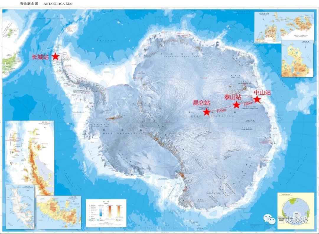 中国南极泰山站是中国第二个南极内陆考察站,站区位置坐标为:东经76°58′,南纬73°51′,海拔高度2621米。其位于东南极冰盖伊丽莎白公主地区域,距中山站约520公里,距昆仑站约715公里,距格罗夫山地区约85公里。