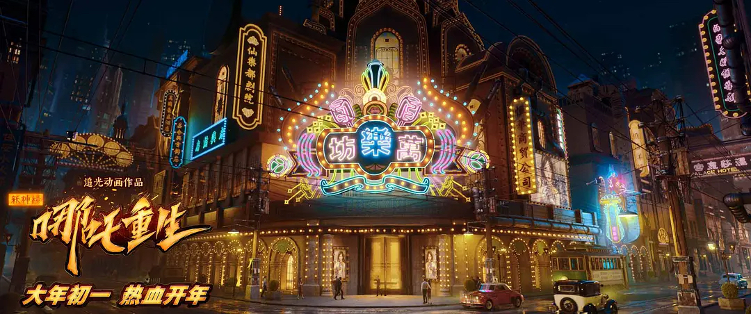 此外,朋克元素的加入,使得整座城市看上去更硬核酷炫,也为观众带来了耳目一新的东方朋克国潮风。如此天马行空的脑洞、新颖酷炫的国潮风格、以及一触即发的交锋,必将引领观众在大年初一与新哪吒一起展开热血之旅。