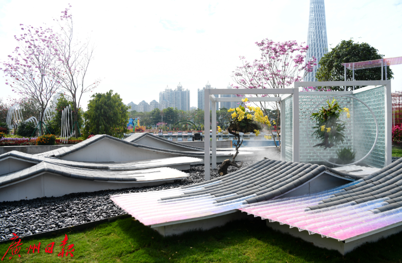 在花都区展园设计中,而是采用用亚克力以及其他金属材质等,也就是以中式的意境、现代的演绎方法,以三棵“生命之树”为主体、搭配不同颜色的特色景墙、结合缤纷多彩的花境景观,来展现“花漾城市,魅力花都”的主题,展现了花都区近年来着力建设美丽宜居城市、打造“花漾城市、美丽花都”品牌形象的决心。