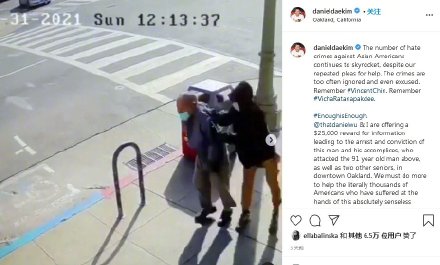 两人在ins发文称美国自去年出现多起针对亚裔的仇恨犯罪,而亚裔对此发出的请求无人理会,如“请记住Vincent Chin”——1月31日在旧金山,91岁的亚裔男子Vincent Chin被人突然推倒在地。ABC 7新闻报道,这名行凶者也袭击了唐人街地区另外两个亚裔老年人,一个60岁男子,一个55岁女子。