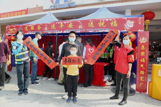 春联内容各不相同,闻讯而来挑选春联的司乘人员络绎不绝、人头攒动。“你好,我想领个福字沾沾喜气。”“你好,我很喜欢这副对联,可以送给我吗?”志愿者们忙于与司乘人员沟通确认、包装赠送……让司乘人员把“福气”带回家,把喜爱的春联带回家,把春节的喜庆带回家。活动共送出了100余副春联和100余张“福”字,把浓浓“年味”和美好祝福送给大家,深受广大司乘的喜爱和好评。