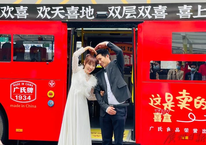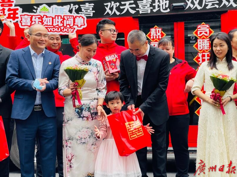活动期间,主持人向在场观众揭开了藏在车厢里的秘密。开门见喜,四对男女手挽着手从车上缓缓步出,原来活动特别邀请了四对职工夫妻,他们分别代表了老、中、青三个年龄阶段的爱侣,他们以爱之名为双喜巴士加持,为双喜巴士喜上添喜!公交集团、华糖公司相关领导分别为四对夫妻送上甜蜜喜盒和新春祝福,现场响起阵阵掌声和欢呼声,衷心的祝福漫天“喜”来。