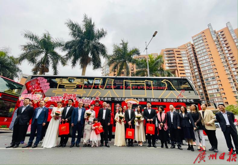 为响应广州市政府春节期间“在穗过年”的号召,紧贴“甜蜜经济”幸福产业发展形势,广州公交集团电车有限公司与广州轻工集团旗下广州华糖食品有限公司在珠江新城海风路总站开展“在穗过牛年、双喜同分享”——春运党旗红,双喜“掂”(电)车如约线路主题活动,邀情市民一起在穗过年,花城看花,体验不一样的牛年!