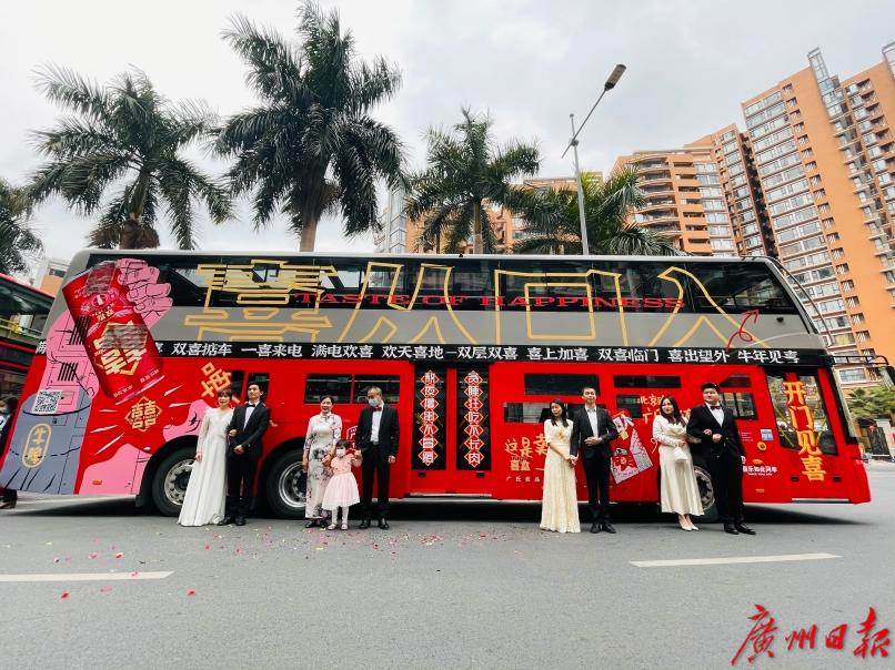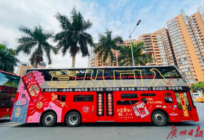 春节期间,广州公交集团电车有限公司与广州轻工集团旗下广州华糖食品有限公司联合推出专为2021新年定制的主题游览专列:双喜“掂”车。