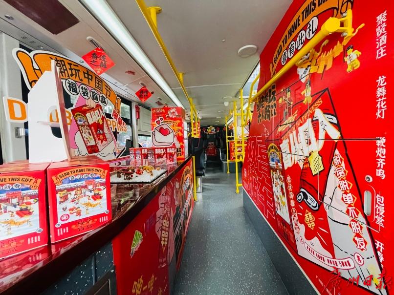 车身喜气十足,车厢里则内藏乾坤,走进车厢,只见琳琅满目的福袋、窗花和灯笼挂饰,营造出喜庆的节日气氛。盲盒、乐高让年轻人爱不释手,而极具创意的广府吉利话,让上了年纪的人也被感亲切。别出心裁设计兼具美观与寓意,可以说双喜“掂”车,样样都“掂”!