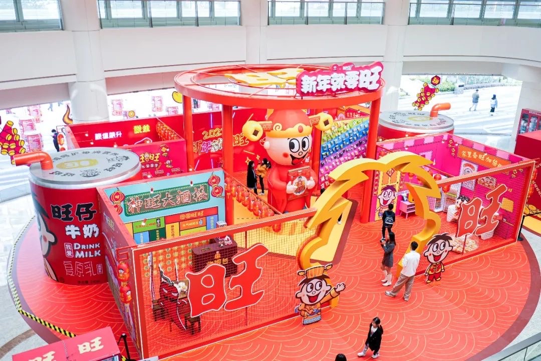 6米高的巨旺装置,正门门框就是旺仔头形的轮廓,迈进这个门,就意味着新的一年旺旺旺!