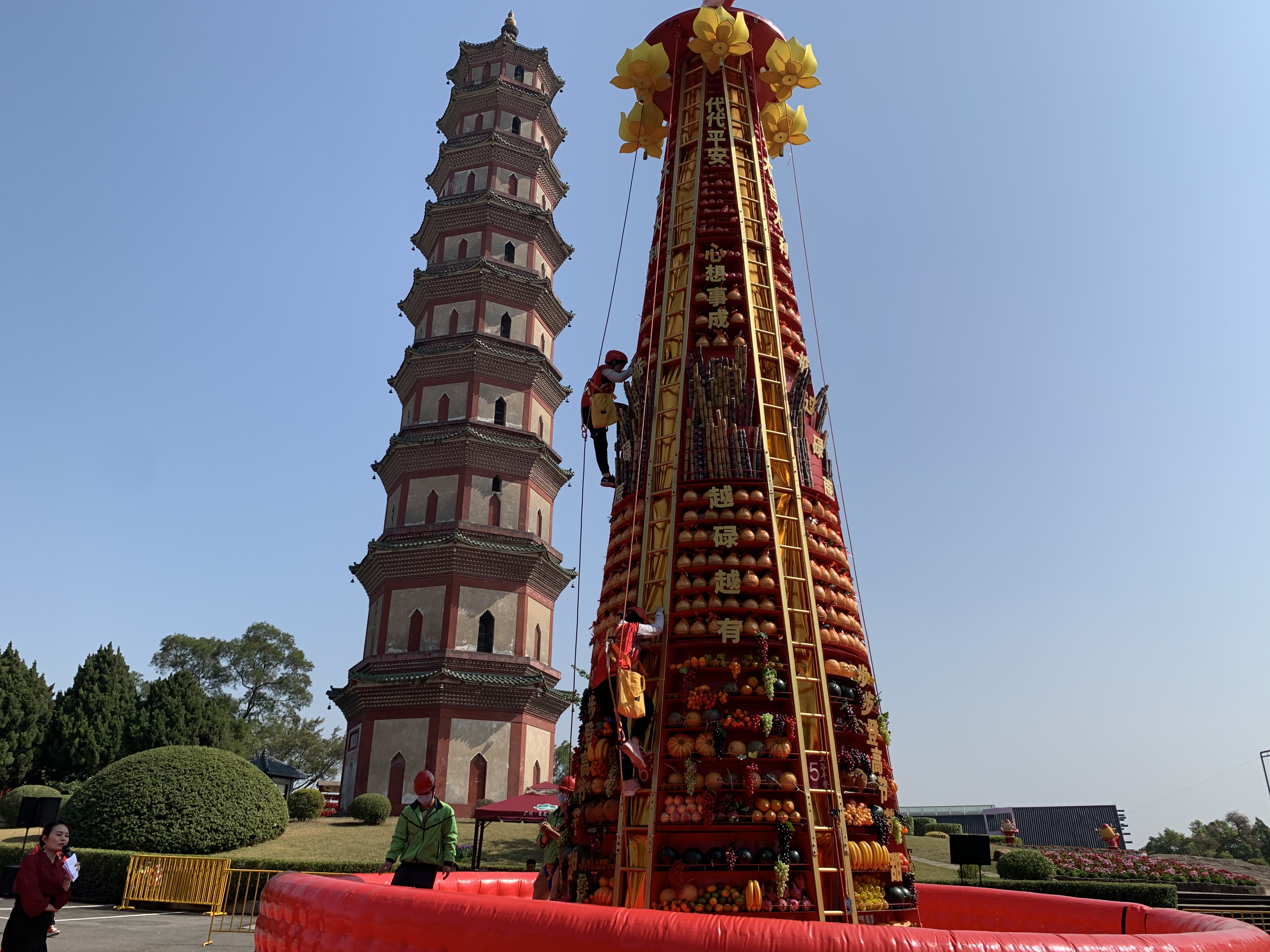 16米高的“金山”上堆砌着各种独具广府寓意的蔬果,而且各有各的寓意,如此特别的贺新春场面,就在莲花山风景区。莲花山风景区爬16米高的“金山”,吸引了众多市民游客提前参与,现场乐趣多多。