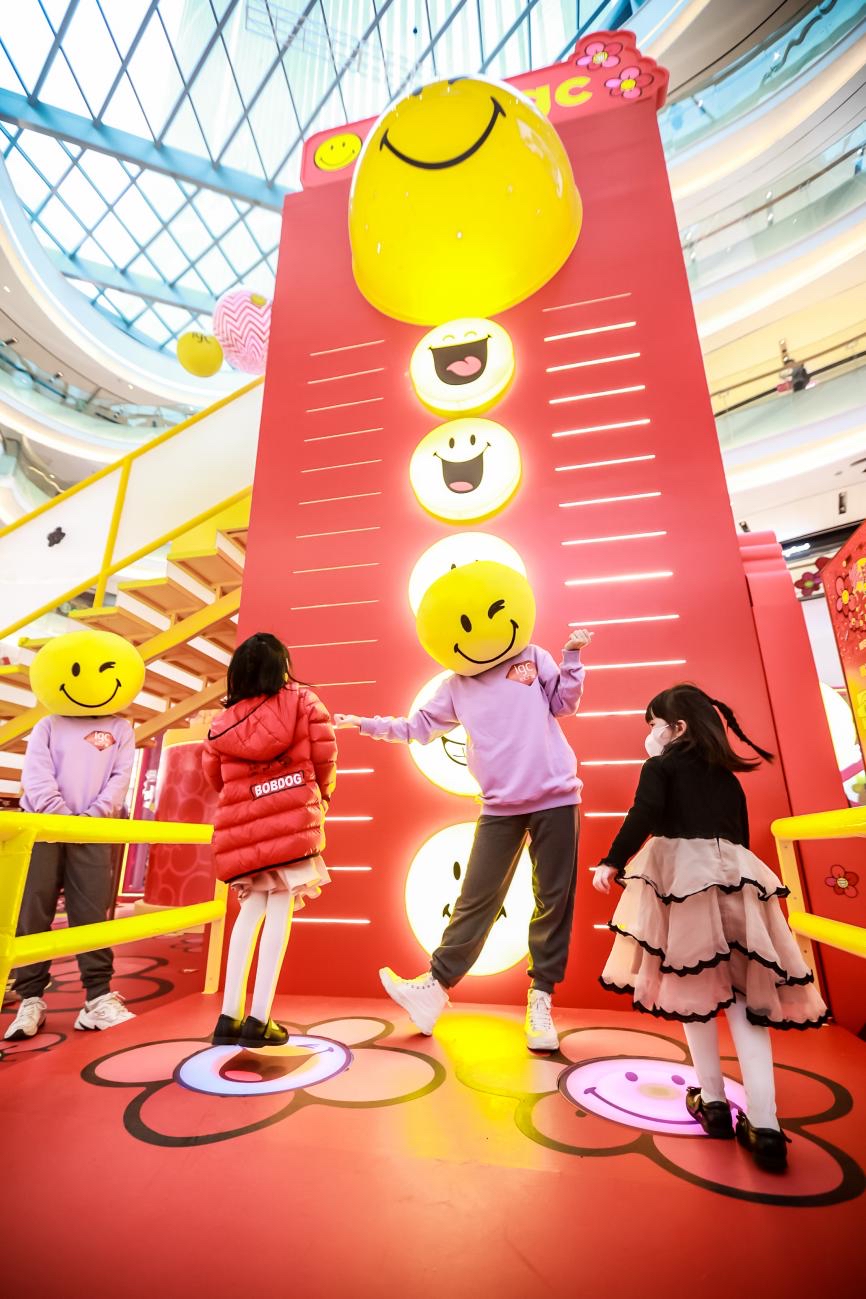 天汇广场igc联手超级流量IP“SmileyWorld”打造“笑迎牛年”互动展 5米高巨型扭蛋塔,成为全城打卡热潮,以“乐观积极的精神向导”之名亮相广州,将表情的可塑性与承载着美好寓意的桃花、风车等传统元素相结合,在场景布置上突破静态形象实体化的局限,带来多样化的互动形式,力求让每一位到达商场的顾客都能体验到移步换景的奇妙与乐趣,带给广州欢乐潮萌的氛围,与大家一同乐观积极地“笑迎牛年”。