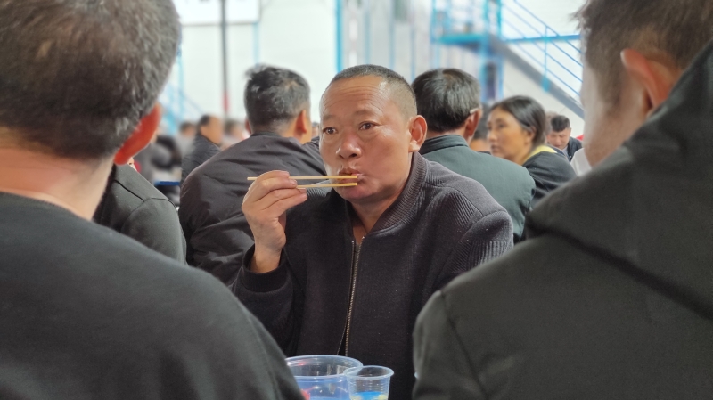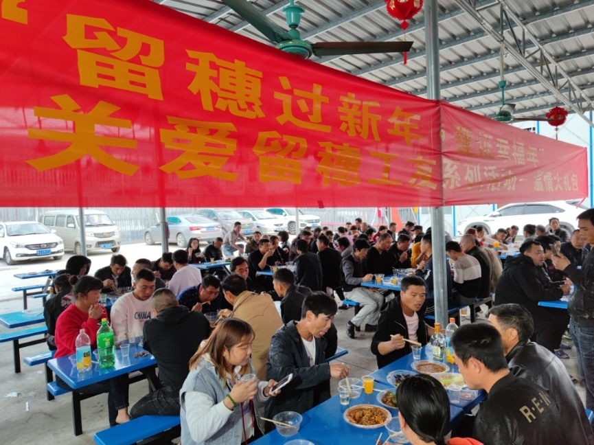这些平日里并肩作战的工友,早就结下了深厚的友情,如今更是成了一齐过年的亲人。很快,现场的气氛就热络起来,到处都充斥着欢声笑语。
