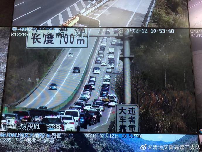 而在许广高速清连段K1287车流较大,过往车辆请减速慢行。