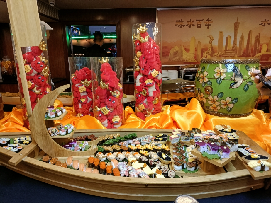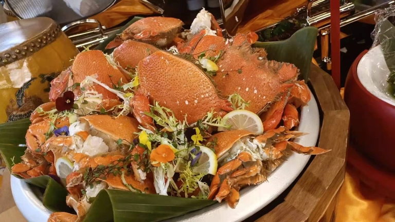 据介结,主题船上的美食严选阿拉斯加帝王蟹、加拿大北极贝、挪威三文鱼、新西兰青口、泰国大白虾等来自世界各地的优质食材,集佛跳墙、鲍翅羹、火焰阿根廷顶级牛柳、意大利手工冰激凌、无酒精香槟等全球地标性美食,让广大游客和市民体验一场世界美食荟萃之旅,感受别具一格的百年珠水浪漫情怀。