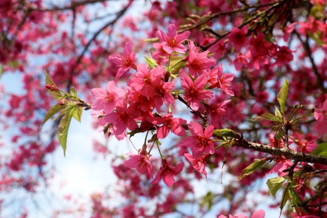 据相关负责人介绍,目前园区的中国红樱、西施樱、紫花风铃木正在绽放,接下来,广州樱、黄花风铃木、福禄寿、小乔、貂蝉等品种樱花陆续绽放。受前段时间的寒潮影响,气温又突然回暖,在这样的天气下,今年的樱花较以往长势更好。“简单来说,低温能让樱花分化更多花芽,高温会分化出更多叶芽。所以在前段时间的寒潮影响下,今年的樱花花芽很多,固然之,花朵比以往都多,整体效果看起来更漂亮。”该负责人介绍。