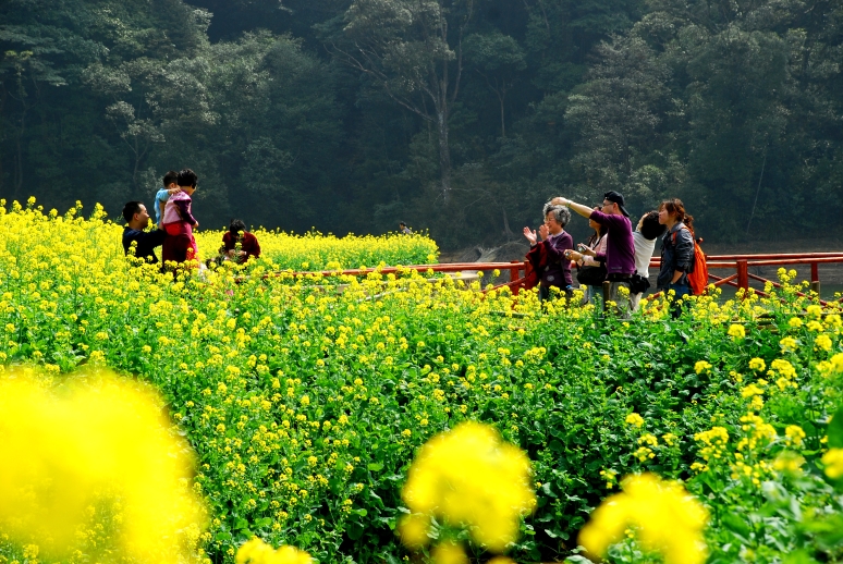 位于从化流溪河畔的石门国家森林公园,近日“黄金花海”又再刷屏朋友圈。目前这里近百亩油菜花、兰花和桃花进入了盛花期,放眼过去都是金黄色一片。公园的油菜花有两片,分别是天池油菜花及梯田油菜花。石灶景区内的天池油菜花田,面积近百亩,沿天池延绵两公里,与郁郁葱葱的原始次生林隔天池相望。浓烈饱和的金黄色犹如绿色翡翠中的一道耀眼光芒,被游客称为“石门黄金花海”。