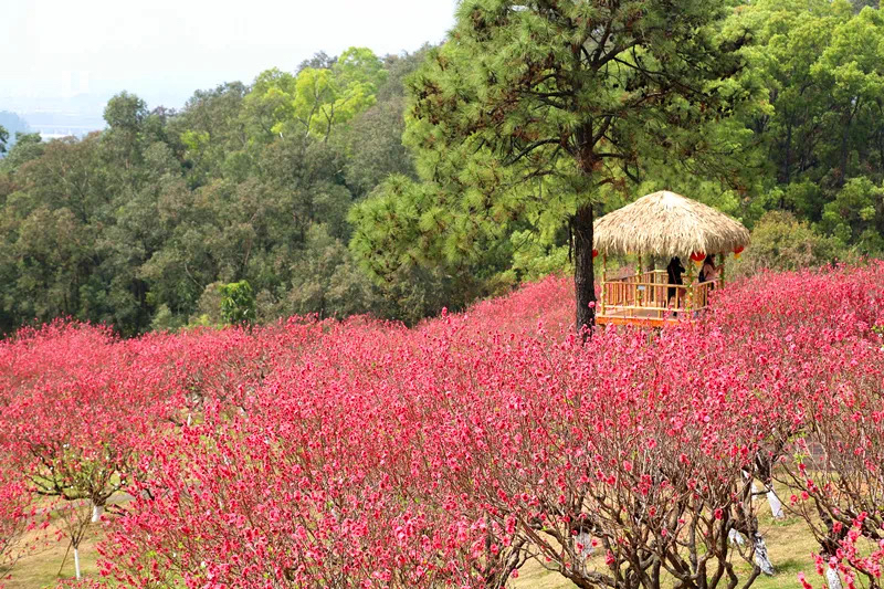 赏桃花、逗利是、攞福米,这是广府习俗最浓郁的年味。每年莲花山桃花园是众多游客新年必到的打卡点,希翼旺财旺事业旺姻缘。今年春节,占地近40亩的桃花园内,万株桃树迎春盛开,各个品种的桃花争奇斗艳:白碧桃花色洁白,清香雅致,冰清玉洁;蟠桃花型丰腴,色彩鲜艳,如脂如染;绯桃树形特别,花朵繁密,如霞似锦。