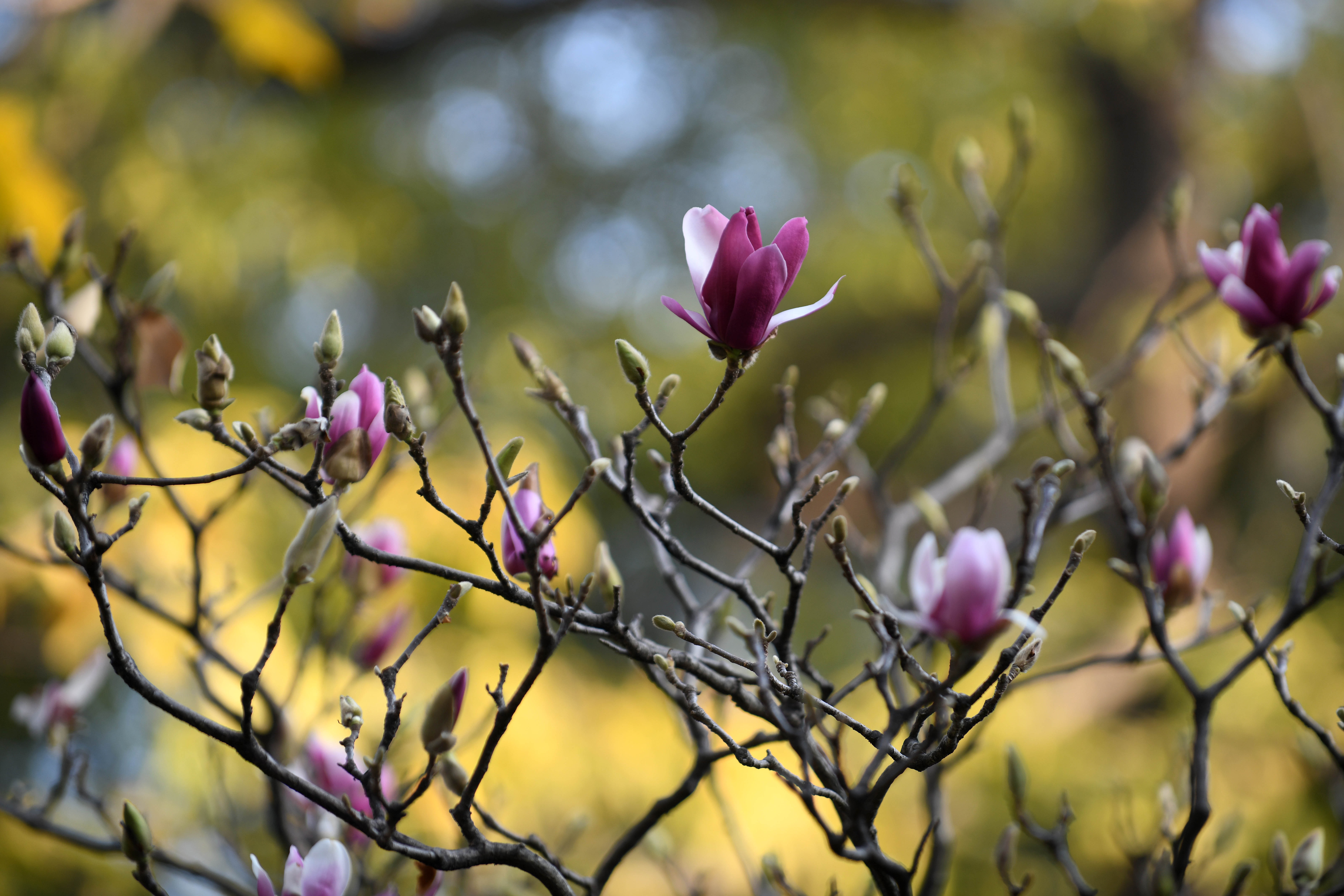 在珠江公园,群花争艳,五颜六色。其中玉兰和樱花长势作为良好,数量也最多。园内静谧的空气里,徜徉着玉兰和樱花的香气,从花丛中经过,也让人陶醉花香中。