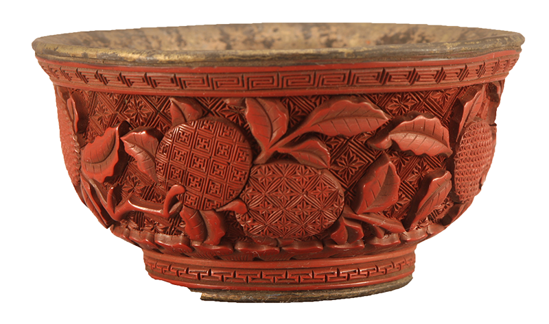 图:清金属胎雕漆荔枝纹小碗(广东省博物馆藏)