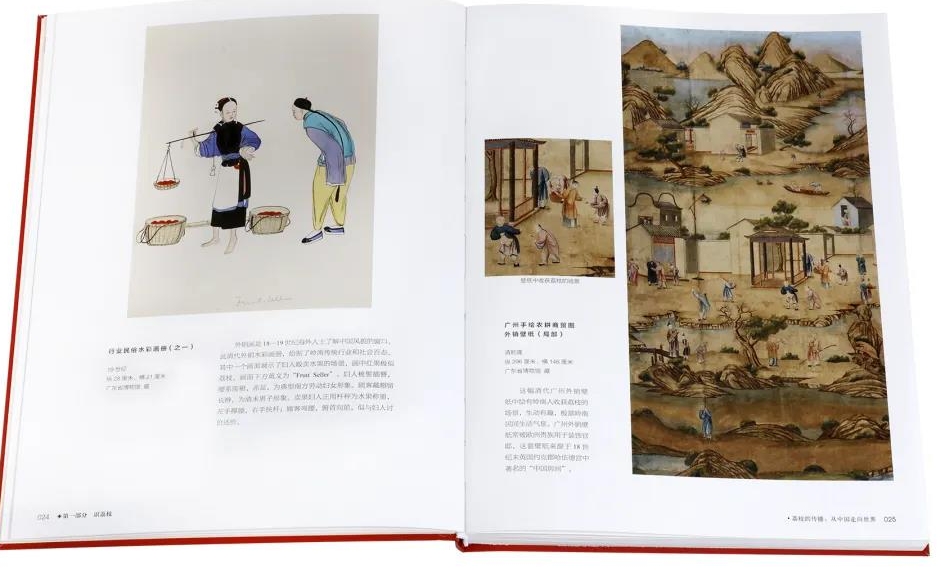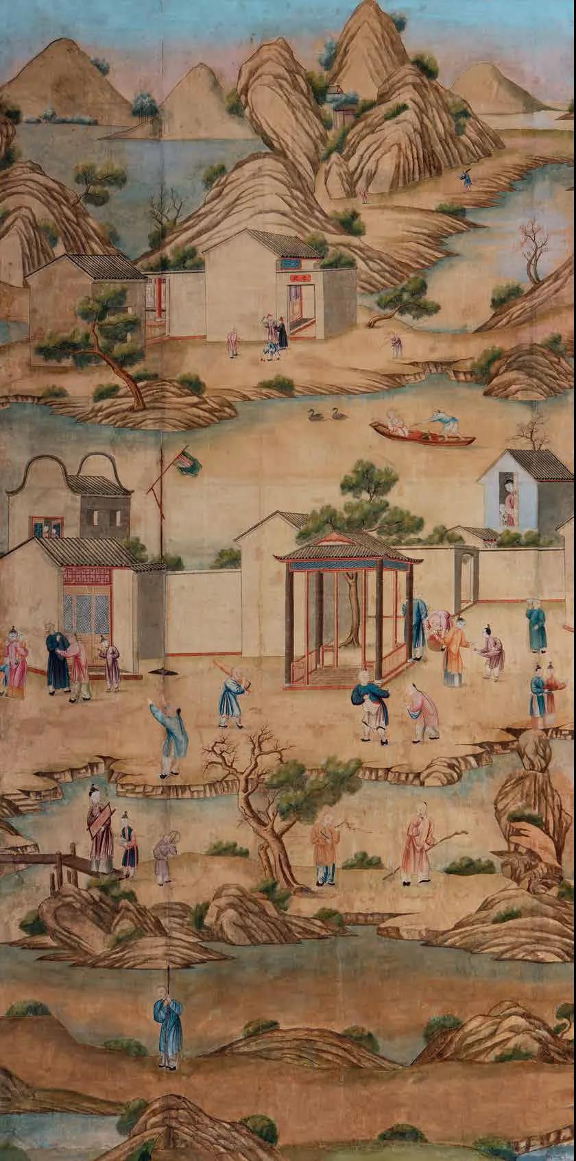 图:清乾隆广州手绘农耕商贸图外销墙纸,(广东省博物馆藏)