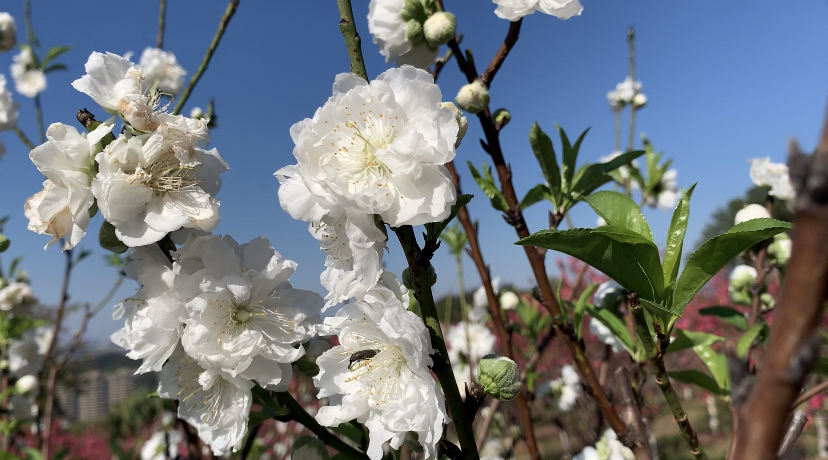 2021年广州番禺莲花山“鸿图大展”桃花展上线啦!记者今日走访了解到,今年莲花山占地近40亩的桃花园格外热闹,万株桃花迎春绽放,各个品种的桃花争奇斗艳:白碧桃花色洁白,清香雅致,冰清玉洁;蟠桃花型丰腴,色彩鲜艳,如脂如染;绯桃树形特别,花朵繁密,如霞似锦。