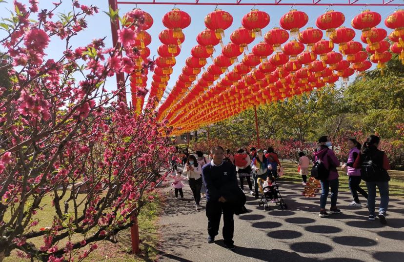 迎着万盏“福”字灯笼,游客们一起从万福路深入桃花园,摇曳的“福”字灯笼与姹紫嫣红的桃花相映生辉,新春的喜庆扑面而来。