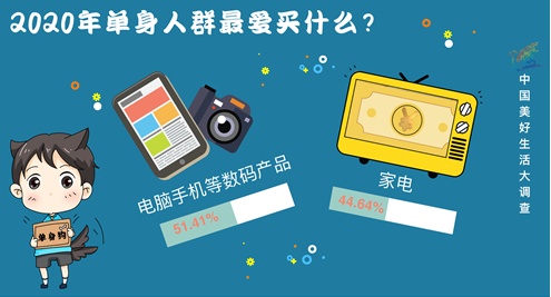 能挣还要会花,升职加薪了的单身人群也是消费主力军。手机数码、家电这些主要消费品领跑大家。