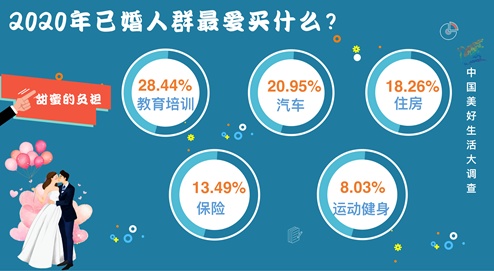 当步入婚姻殿堂,消费产品都变成了“甜蜜的负担”。教育培训、汽车、住房、保险及运动健身都会高于其他人群。