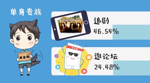 单身贵族们则喜欢在手机里追剧、逛论坛。韬光养晦的时期最爱思考,用电视剧学点生活经验也是好的。