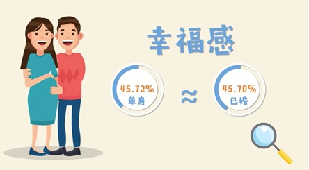 一个人孤军奋战的单身人群,虽然有一点点孤单,但没有了情感纠葛、为鸡毛蒜皮小事的争吵,日子似乎过得还挺清净、潇洒。《中国美好生活大调查》数据就显示,过去一年单身人群的幸福感(45.72%)已经几乎和已婚人群没有差距了(45.70%)。