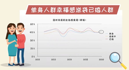 要知道,过去单身人群的幸福感一直是被有伴侣人群碾压的。看来2020年单身人群的逆袭之年又要加上一分。