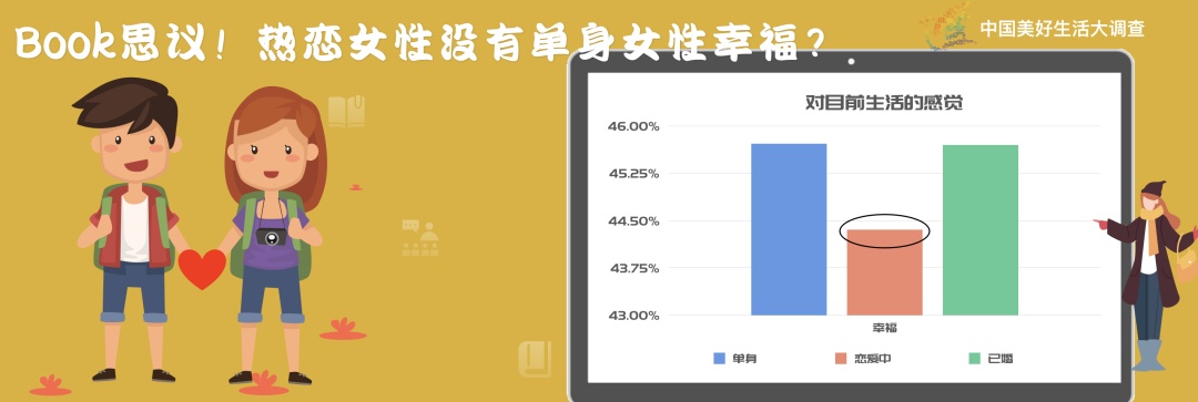 其中,单身和已婚女性的幸福感,竟然都高于未婚有恋人的女性。难道甜蜜的热恋还伴随着“甜蜜的烦恼”?