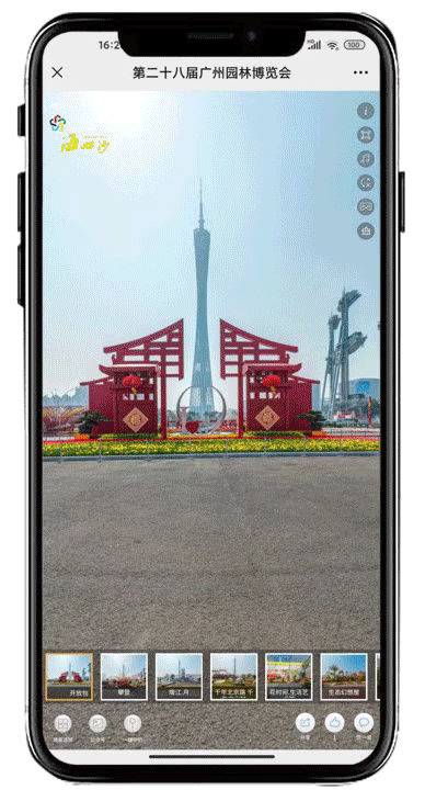 只需关注“广州海心沙”微信公众号,在页面底部点击“全景看花”,就可以正式进入VR全景游览了。