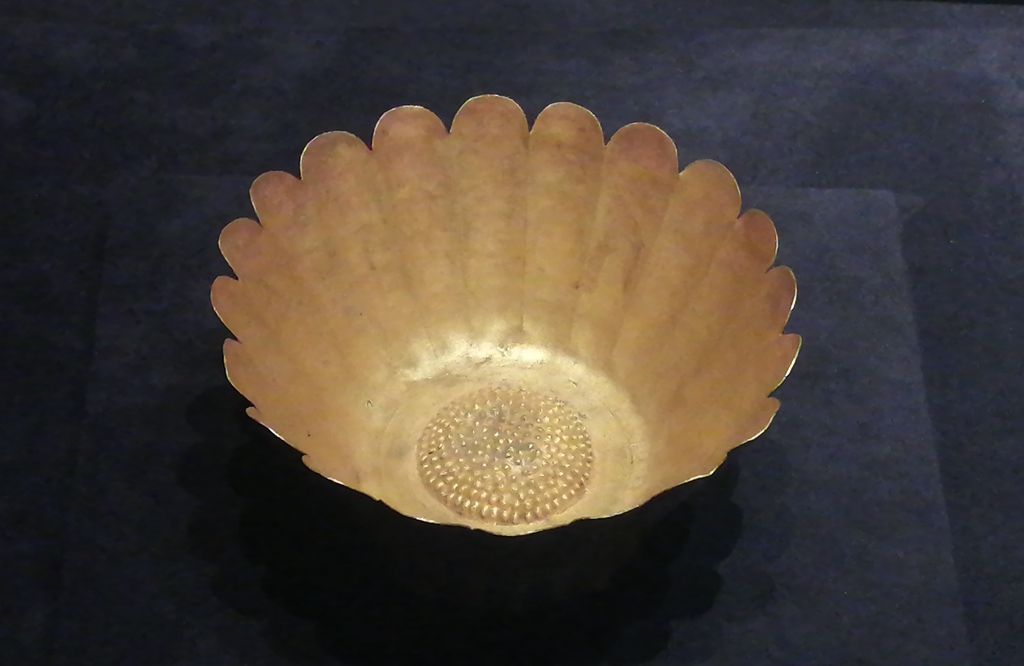 同样地,在相邻展柜中展出的唐代金银器,比如银质莲瓣印花高足杯“吸收了西亚地区的工艺特点……这一时期中国制造的金银器还通过广州出口到日本、东南亚等国。”这都说明广州在唐代对外贸易中的重要地位。