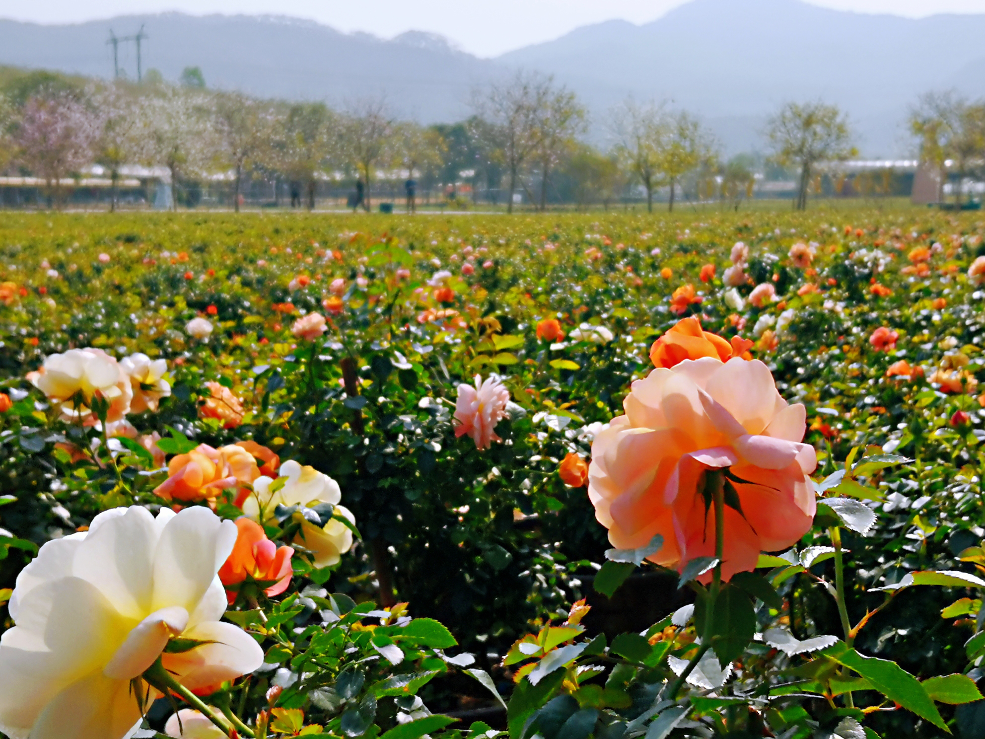 在赤坭镇志惠农场,投资2000多万元打造的100多亩月季基地正迎春怒放。阳光下的月季花生机盎然,有的洁白无瑕、有的姹紫嫣红、有的含苞待放。绝代佳人、樱桃伯尼卡、天鹅绒地毯、约定、玫迪兰系列、漂流系列、ADR系列等品种的月季,朵朵娇色笑迎风。当你走在这些花间小路,清风拂过,各种月季花香,随着空气扑面而来。