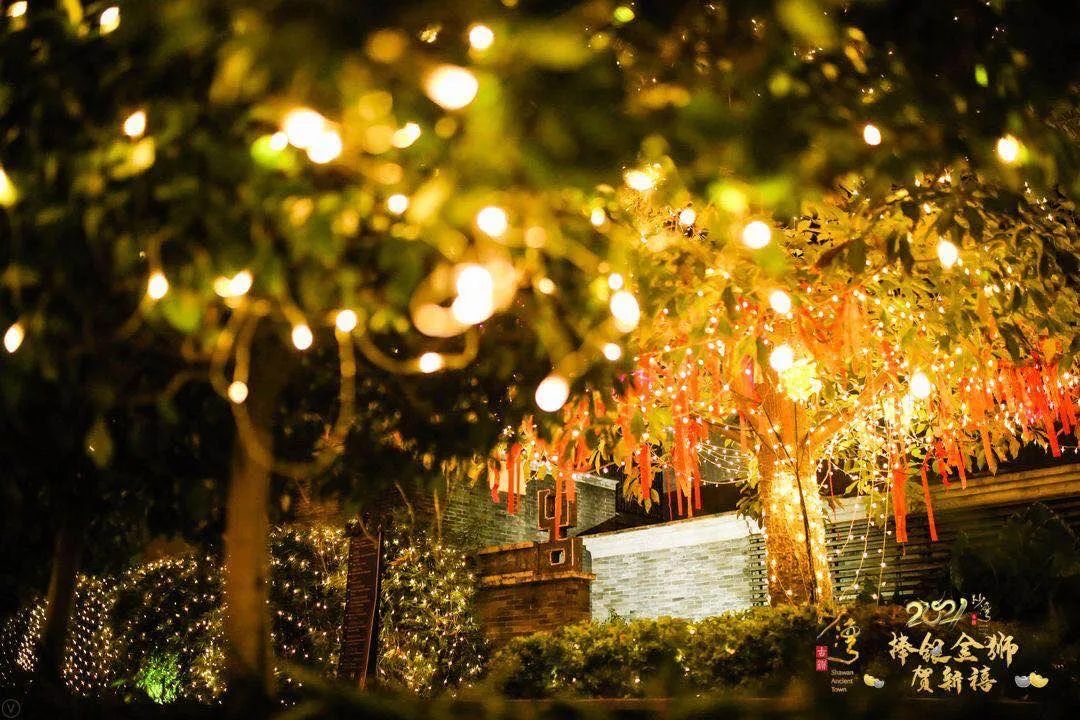 白天的活动精彩不断,夜幕降临,沙湾古镇的夜景呈现另有一番风味。沙湾古镇除了有精彩的活动,游客还可欣赏位于西广场的大型砖雕艺术影壁《古韵薪火·盛世腾芳》。