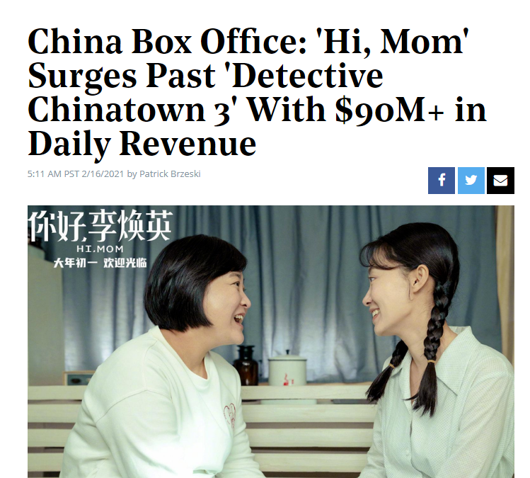 美国《好莱坞报道》的文章则关注了《你好,李焕英》这匹春节档“黑马”。