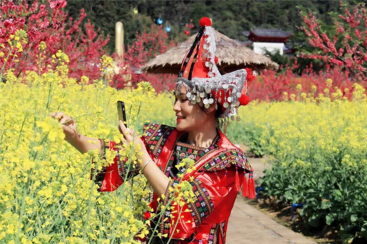 与此同时,一向平凡的油菜花也搬进了该县的星级景区,百亩油菜花与碧桃花争奇斗艳,一派春花怒放的景象。“近期天气较暖,游客也比较多,刚好油菜花开得绚烂,很多都是奔着它来的”景区刘经理介绍到。