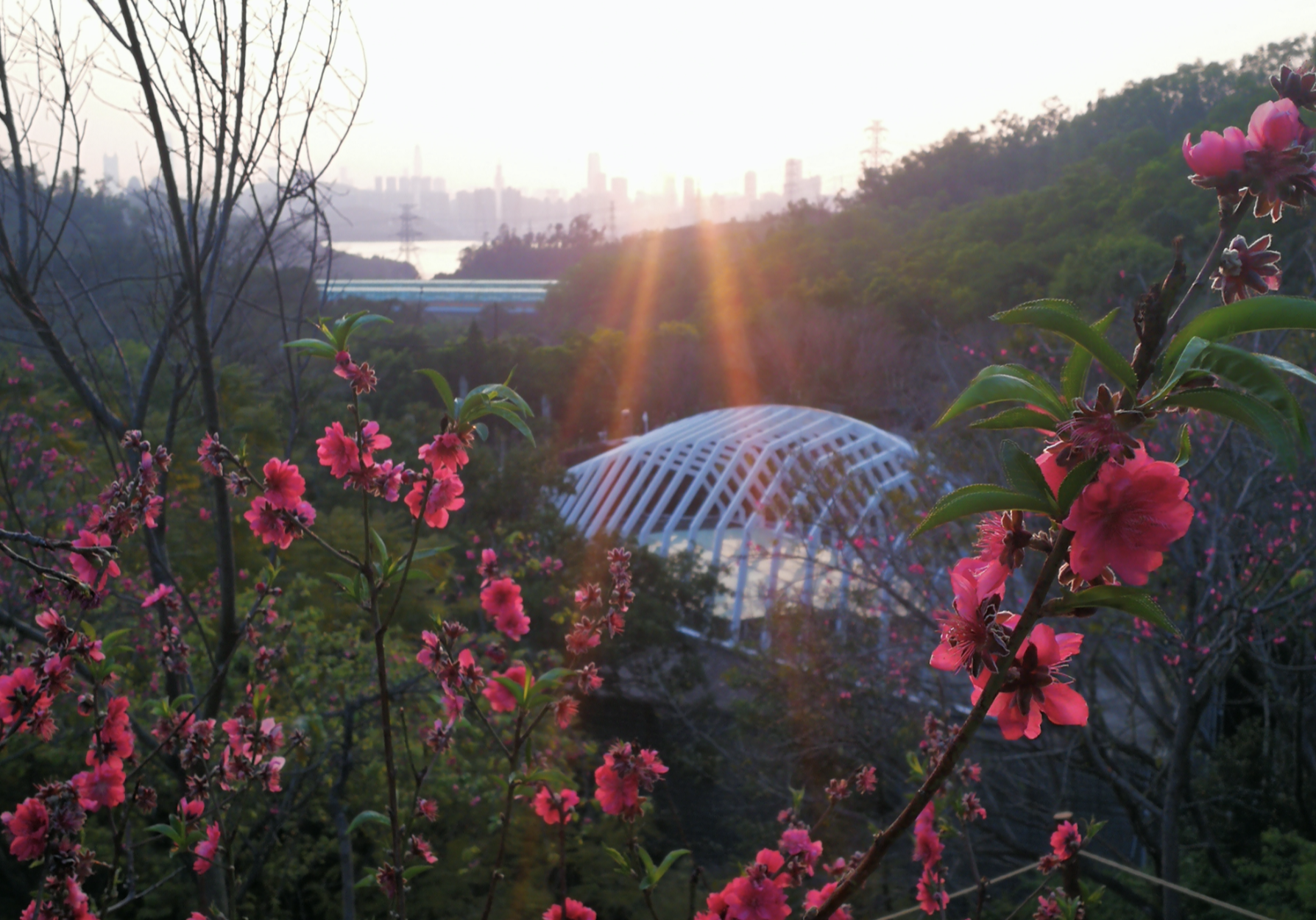 仙湖植物园副主任谢锐星介绍,桃花园里一共有500多株樱花,分别为两个原生种,云南冬樱花和福建山樱花,以及三个杂交品种中国红樱花、广州樱和牡丹樱。这些樱花是近年来仙湖植物园科研人员为适应深圳本地环境从其他地方引入栽种,摸索抚育已有六七年的时间。近几年,仙湖植物园每年都增加一些樱花的数量,选择最合适深圳观赏的品种,并计划将桃花园、仙人掌区和多肉园后面的山坡营造成具有一定规模的赏樱景点。