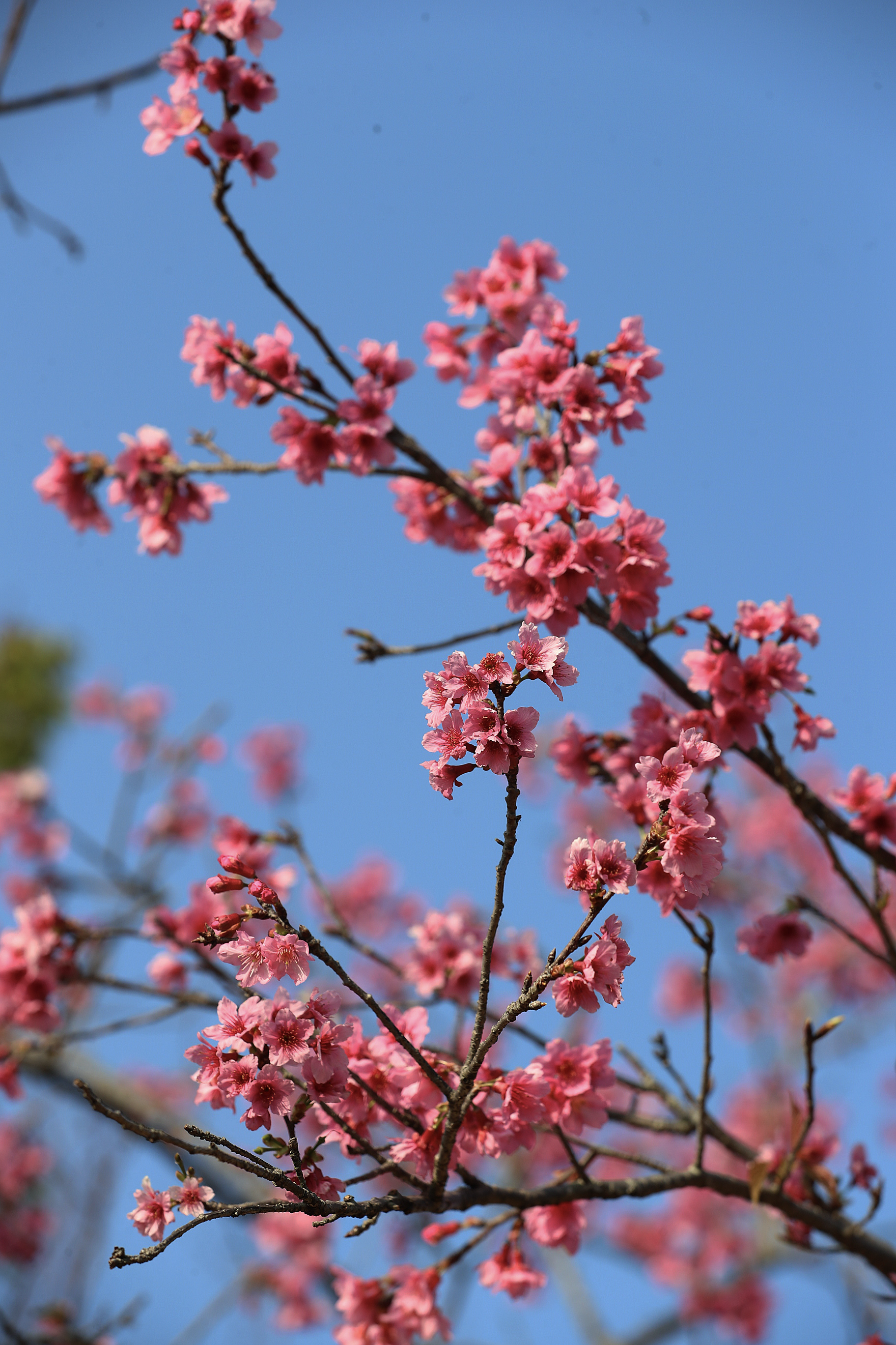 据悉,樱花开花与气候有很大关系,因为年前有一波足够冷的冷空气,后面温度适合,天气晴朗,所以今年仙湖植物园樱花花期较长,花繁,花色也较鲜艳。