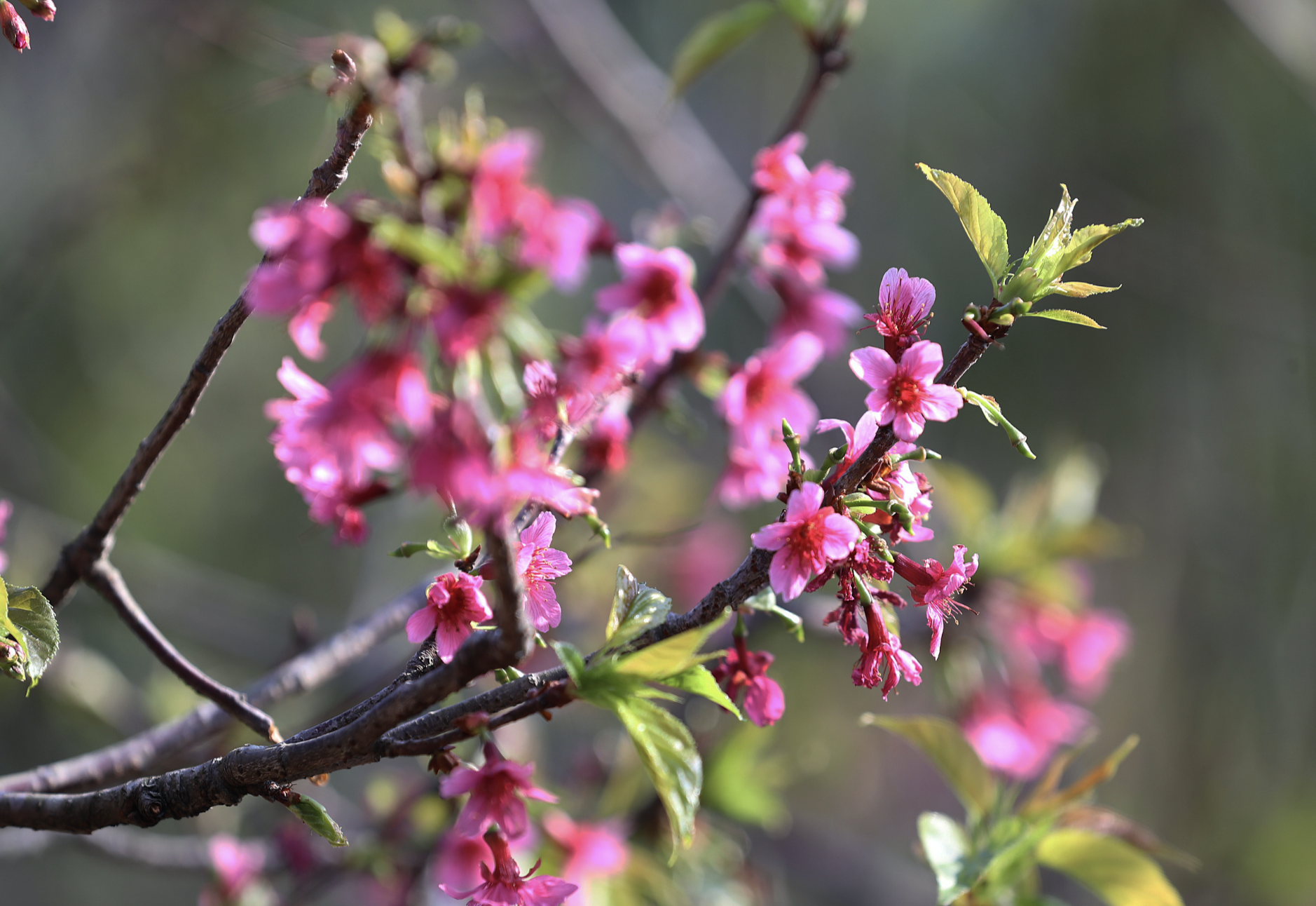 春节假期,仙湖植物园化石森林桃花园里的500多株樱花盛放,吸引市民前来观赏、拍照。记者看到,盛开的樱花满树烂漫、粉粉嫩嫩,娇艳欲滴。